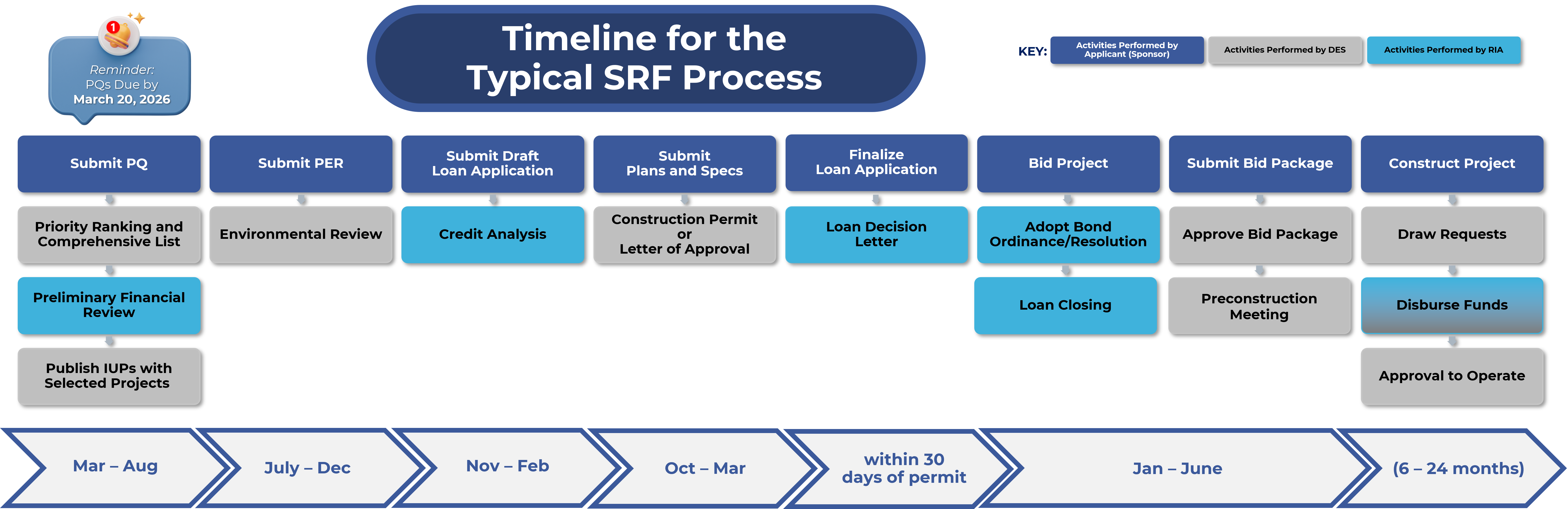 All eligible projects will be ranked in accordance with the Integrated Priority Ranking System and placed on the State's Comprehensive Priority List. Every year, SCDES will develop IUPs that identify projects that are ready to proceed and expected to receive loans for the upcoming fiscal year (July 1- June 30).