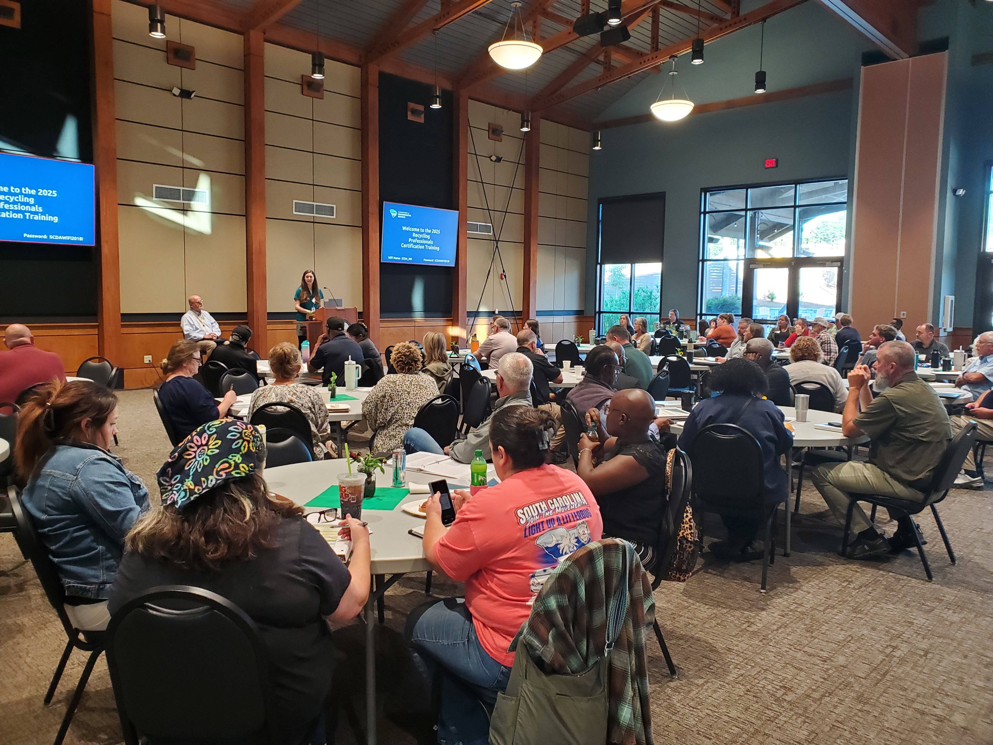 SCDES’s Office of Solid Waste Reduction and Recycling (The Office) recently hosted more than 100 recycling representatives from local governments, colleges/universities, and business for a free, three-day training and workshop at The Phillips Market Center in West Columbia. The Office put on two events in one by offering the Recycling Professionals Certification Training and Annual Recycling & Solid Waste Professionals Workshop over the course of October 14-16, 2025.